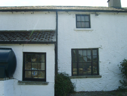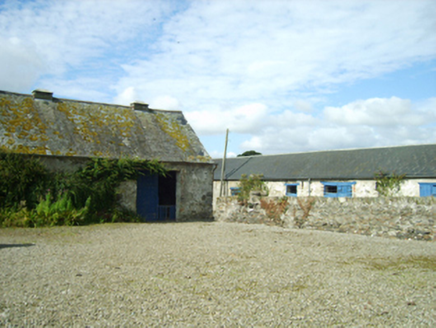 Detached three-bay single-storey farmhouse with half-dormer attic, extant 1839, on a cruciform plan centred on single-bay full-height gabled breakfront; single-bay (four-bay deep) full-height return (south). Vacant, 1901; 1911. Sold, 1922. Reroofed, 1987. Replacement pitched artificial slate roof on a T-shaped plan centred on pitched (gabled) artificial slate roof (breakfront); replacement pitched artificial slate roof (south), clay ridge tiles, paired rendered red brick Running bond central chimney stacks having stringcourses below capping supporting terracotta or yellow terracotta octagonal pots, decorative timber bargeboards to gables on timber purlins, and uPVC rainwater goods on slightly overhanging rendered eaves. Rendered walls on rendered plinth; limewashed lime rendered or roughcast surface finish (south). Square-headed central door opening with timber surround framing replacement glazed timber double doors. Square-headed window openings in bipartite arrangement with cut-granite sills, timber mullions, and rendered "bas-relief" surrounds framing six-over-six (ground floor) or three-over-three (half-dormer attic) timber sash windows. Square-headed window openings (south) with cut-granite sills, and concealed dressings framing six-over-six (ground floor) or three-over-three (half-dormer attic) timber sash windows without horns having part exposed sash boxes. Interior including (ground floor): central hall retaining carved timber surrounds to door openings framing timber panelled doors; reception room (east) retaining carved timber surround to door opening framing timber panelled door with carved timber surrounds to window openings framing timber panelled shutters, chimneypiece, and picture railing below moulded plasterwork cornice to ceiling centred on "Acanthus" ceiling rose; reception room (west) retaining carved timber surround to door opening framing timber panelled door with carved timber surround to window opening framing timber panelled shutters, chimneypiece, and picture railing below moulded plasterwork cornice to ceiling; and carved timber surrounds to door openings to remainder framing timber panelled doors with carved timber surrounds to window openings framing timber panelled shutters. Set in landscaped grounds with benchmark-inscribed cut-granite monolithic piers to perimeter supporting wrought iron double gates.