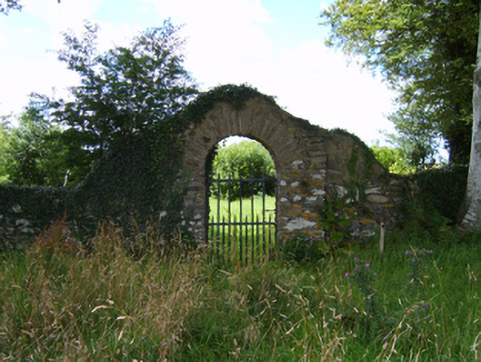 Burial ground, opened 1778. Set in copse in grounds shared with Ballinclay House with part creeper- or ivy-covered boundary wall to perimeter having overgrown coping centred on round-headed gateway framing arrow head-detailed flat iron gate.