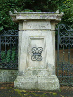 A gateway not only making a pleasing visual statement in a sylvan street scene at the entrance on to the grounds of the Farmley House estate but also, emblazoned with the intertwined Carew-Cliffe monogram ("CC"), surviving as a repurposed relic of the Castleboro House estate (cf. 15702508).