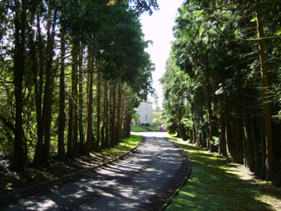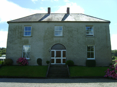 Detached three-bay two-storey over basement farmhouse, extant 1839, on a rectangular plan; three-bay two-storey rear (south) elevation. Occupied, 1901; 1911. Sold, 1935. Reroofed, 1947. Refenestrated, 2007. Hipped slate roof with clay ridge tiles, paired red brick Running bond central chimney stacks having corbelled stepped capping, and cast-iron rainwater goods on rendered eaves retaining cast-iron hoppers and downpipes. Fine roughcast battered walls. Segmental-headed central door opening approached by flight of nine cut-granite steps with concealed dressings framing replacement glazed aluminium door having sidelights below overlight. Square-headed window openings including square-headed window openings to rear (south) elevation centred on segmental-headed window opening (first floor) with cut-granite sills, and concealed dressings framing replacement two-over-two sash windows without horns with replacement two-over-two sash windows without horns to rear (south) elevation centred on fixed-pane timber fitting having fanlight. Interior including (ground floor): central hall retaining carved timber surrounds to door openings framing timber panelled doors; and carved timber surrounds to door openings to remainder framing timber panelled doors with timber panelled shutters to window openings. Set in landscaped grounds.