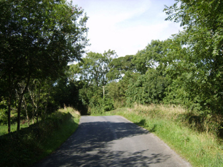 Two-arch hump back road bridge over river, extant 1839. Creeper- or ivy-covered walls centred on triangular cutwater to pier having overgrown capping with overgrown coping to parapets. Pair of segmental arches with lichen-spotted voussoirs. Sited spanning Owenavorragh River with unkempt banks to river.