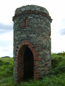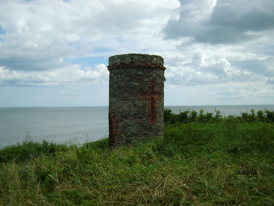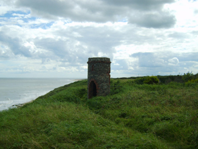 Freestanding single-bay single-stage turret, extant 1904, on a circular plan. Roof not visible behind parapet. Part repointed coursed rubble limestone walls with red brick header bond beaded cornice supporting parapet. "Balistraria" centred on pointed-arch opening with overgrown threshold, and red brick block-and-start surround with no fittings surviving. Set in unkempt grounds shared with Cahore House.