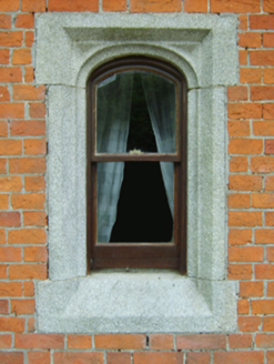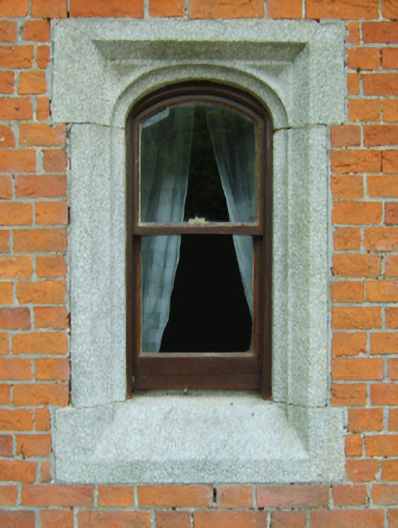 Detached three-bay single-storey gate lodge with half-dormer attic, built 1846, on a cruciform plan centred on single-bay full-height gabled projecting breakfront; single-bay (single-bay deep) full-height central return (east). Renovated, ----, to accommodate continued private residential use. Pitched slate roof on a cruciform plan centred on pitched (gabled) slate roof (breakfront) with terracotta ridge tiles, paired red brick Running bond octagonal central chimney stacks on cut-granite chamfered cushion course on red brick Running bond base having cut-granite capping, rooflights to front (west) pitch, and cast-iron rainwater goods on timber box eaves having chamfered timber consoles. Red brick Flemish bond walls on chamfered cushion course on red brick Flemish bond base. Elliptical-headed window openings centred on elliptical-headed window opening in bipartite arrangement with elliptical-headed window openings (east), cut-granite lugged surrounds having chamfered reveals framing one-over-one timber sash windows without horns. Set back from line of road at entrance to grounds of Cahore House.