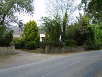 Detached five-bay two-storey farmhouse house, extant 1840, on a U-shaped plan centred on single-bay single-storey flat-roofed projecting porch to ground floor; pair of single-bay (single-bay deep) single-storey lean-to central returns (north). Occupied, 1911. Now disused. Pitched slate roof extending into lean-to slate roofs (north) with clay ridge tiles, rendered chimney stacks having concrete capping supporting terracotta pots, and cast-iron rainwater goods on rendered eaves retaining cast-iron downpipes. Roughcast walls on rendered plinth. Central door opening into farmhouse. Square-headed window openings with cut-granite sills, and concealed dressings framing one-over-one timber sash windows having part exposed sash boxes. Set in unkempt grounds.
