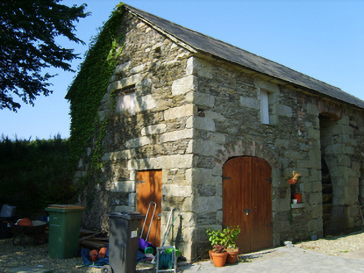 Detached three-bay single-storey mill with half-attic, built 1868, on a rectangular plan. Now disused. Pitched slate roof with clay ridge tiles, central rooflight to rear (south) pitch, and remains of cast-iron rainwater goods on granite or slate flagged eaves. Part creeper- or ivy-covered coursed rubble stone walls with cut- or hammered granite flush quoins to corners. Segmental-headed central opening with red brick voussoirs framing timber waterwheel in cast-iron frame. Elliptical-headed flanking openings with red brick voussoirs framing timber boarded double doors. Square-headed window openings (half-attic) with slate sills, and cut- or hammered granite block-and-start surrounds with fittings now missing. Set in grounds originally shared with Ballyhighland.