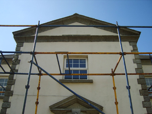 A farmhouse representing an important component of the eighteenth-century domestic built heritage of County Wexford with the architectural value of the composition, '[the] seat [of] Arch. [Archibald] Ormston' (Sleater 1806, 89), confirmed by such attributes as the deliberate alignment maximising on scenic vistas overlooking gently rolling grounds; the symmetrical footprint centred on a Classically-detailed breakfront with a Monart-esque doorcase demonstrating good quality workmanship in a silver-grey granite (see 15701931); the diminishing in scale of the openings on each floor producing a graduated visual impression; and the pedimented roofline. Having been reasonably well maintained, the elementary form and massing survive intact together with quantities of the original fabric: however, an unfinished restoration may determine the ongoing architectural heritage status of a farmhouse having historic connections with the Browne family including Patrick Browne (d. 1918), 'Farmer and Merchant [late of] Broomlands Monart Enniscorthy County Wexford' (Calendars of Wills and Administrations 1918, n.p.).