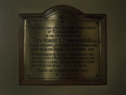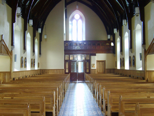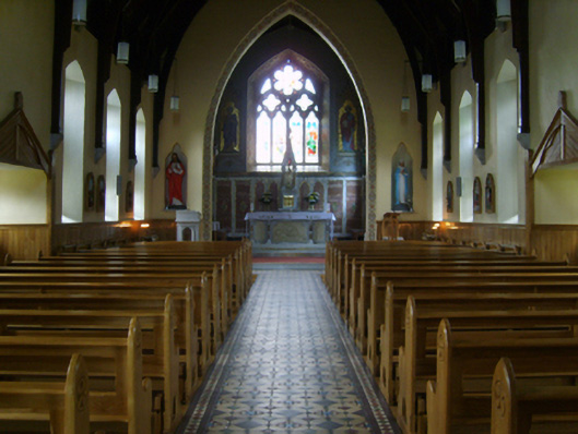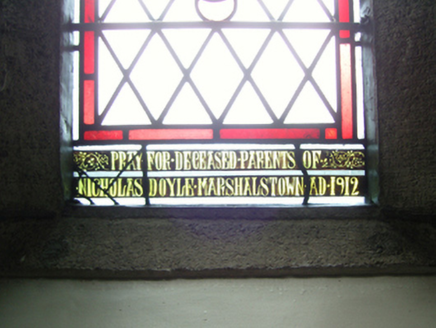 A church representing an important component of the later nineteenth-century ecclesiastical heritage of County Wexford with the architectural value of the composition, one recalling aspects of the contemporary Saint Mary's Catholic Church (1866-7) in Cushenstown (15703501) and thereby attributable to Bonaventure "Bonny" Pierce (1828-1910), confirmed by such attributes as the rectilinear plan form, aligned along a liturgically-correct axis; the construction in a banded ochre-coloured fieldstone offset by silver-grey granite dressings not only demonstrating good quality workmanship, but also producing a mild polychromatic palette; the slender profile of the openings underpinning a "medieval" Gothic theme with the chancel defined by an elegant "East Window"; and the polygonal spire embellishing the tower as a prominent eye-catcher in the landscape. Having been well maintained, the elementary form and massing survive intact together with substantial quantities of the original fabric, both to the exterior and to the interior reordered (1976) in accordance with the liturgical reforms sanctioned by the Second Ecumenical Council of the Vatican (1962-5) where contemporary joinery; vibrant stained glass; a "flèche"-topped high altar; the Flynn Memorial "East Window" (1912); and gilded mosaic work, all highlight the artistic potential of the composition: meanwhile, an exposed timber roof construction pinpoints the engineering or technical dexterity of a church making a pleasing visual statement in a sylvan setting.