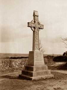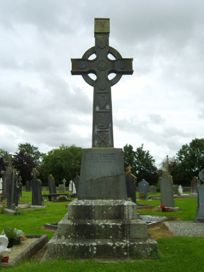 Freestanding drag edged cut-limestone Celtic High Cross-style monument, dated 1878; unveiled 1878, on lichen-covered cut-granite stepped base. Set in landscaped grounds shared with Saint Cormac's Catholic Church.