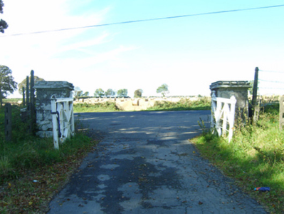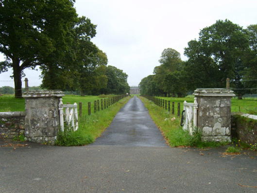 A gateway erected to a design by Daniel Robertson (d. 1849) making a pleasing visual statement in a sylvan street scene at the entrance on to the grounds of the Wells House estate (cf. 15702550). NOTE: A surviving drawing (August 1835) titled "General Plan for rotoring the Great Avenue at Wells the Seat of Robert Doyne Esquire" shows an alternative scheme with gate lodges.