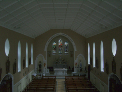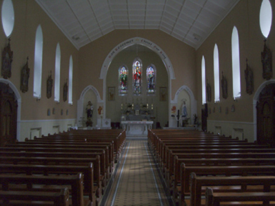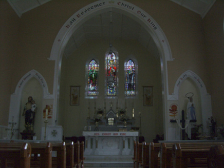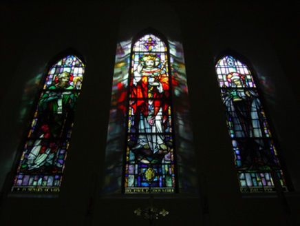A church erected to designs signed (1936) by Ashlin and Coleman (formed 1903) of Dawson Street, Dublin, representing an important component of the twentieth-century ecclesiastical heritage of County Wexford with the architectural value of the composition, one evoking comparisons with the Ashlin and Coleman-designed Catholic Church of the Assumption (1951-3) in Rosbercon (see 15605244); and Catholic Church of Saint John the Baptist (1949-51) in Ballaghkeen (see 15702706), confirmed by such attributes as the rectilinear plan form; the slender profile of the openings underpinning a stolid "medieval" Gothic theme with those openings showing cost-effective precast concrete dressings; and the polygonal spire-topped turret embellishing the roof as a picturesque eye-catcher in the landscape. Having been well maintained, the form and massing survive intact together with substantial quantities of the original fabric, both to the exterior and to the vaulted interior reordered (1970) in accordance with the liturgical reforms sanctioned by the Second Ecumenical Council of the Vatican (1962-5) where contemporary joinery; stained glass supplied (1939) by Earley Studios Limited (closed 1975) of Dublin '[where] each figure is expressive and indicates distinct personality...a fine tribute to the artistic and careful treatment of the work' (The New Ross Standard 6th October 1939, 5); a much modified high altar; and the jewel-like Kehoe Memorial "Trinity Window" (1939); all highlight the artistic potential of a church making a pleasing visual statement in a sylvan setting.