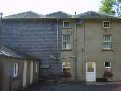 Detached three-bay (two-bay deep) two-storey over basement presbytery, built 1845, on a rectangular plan with three-bay full-height rear (east) elevation. Occupied, 1911. Renovated, ----. Hipped slate roof on an E-shaped plan with pressed or rolled lead ridges, paired red brick Running bond central chimney stacks having corbelled stepped capping supporting terracotta pots, and cast-iron rainwater goods on slightly overhanging rendered eaves retaining cast-iron octagonal or ogee hoppers and downpipes. Replacement gritdashed roughcast wall to front (west) elevation on cement rendered plinth with cement rendered "bas-relief" strips to ends; slate hung surface finish (remainder). Central door opening into presbytery with timber mullions framing timber panelled door having sidelights on panelled risers below overlight. Square-headed window openings to front (west) elevation with cut-granite sills, and cement rendered "bas-relief" surrounds framing replacement uPVC casement windows. Square-headed window openings (remainder) with cut-granite sills, and concealed dressing framing replacement uPVC casement windows. Interior including (ground floor): central hall retaining carved timber surrounds to door openings framing timber panelled doors; and carved timber surrounds to door openings to remainder framing timber panelled doors with timber panelled shutters to window openings. Set in landscaped grounds shared with Saint Clement's Catholic Church.