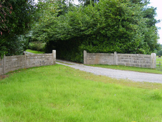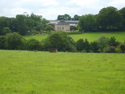 Detached three- or five-bay two-storey over part raised basement farmhouse, extant 1798, on a T-shaped plan with two-bay full-height side elevations; single-bay (single-bay deep) two-storey central return (south). Leased, 1806. Sold, 1876. Occupied, 1911. Sold, 1933. Resold, 1997. "Restored", 1998. Replacement hipped artificial slate roof on a T-shaped plan centred on hipped artificial slate roof (south) with ridge tiles, rendered chimney stack on axis with ridge having cut-granite capping supporting yellow terracotta pots, and uPVC rainwater goods on timber eaves boards on box eaves. Replacement pigmented roughcast walls with rendered "bas-relief" strips to corners. Segmental-headed central door opening approached by flight of nine cut-granite steps between cast-iron railings, timber doorcase with panelled pilasters on padstones supporting cornice, and rendered "bas-relief" surround framing timber panelled double doors having sidelights on panelled risers below fanlight. Square-headed window openings with cut-granite sills, and concealed dressings framing replacement two-over-two (basement), one-over-one (ground floor) or three-over-three (first floor) timber sash windows. Interior including (ground floor): central hall retaining carved timber surrounds to door openings framing timber panelled doors; and carved timber surrounds to door openings to remainder framing timber panelled doors with timber panelled shutters to window openings. Set in landscaped grounds on an elevated site with cut-granite monolithic piers to perimeter supporting looped wrought iron double gates.