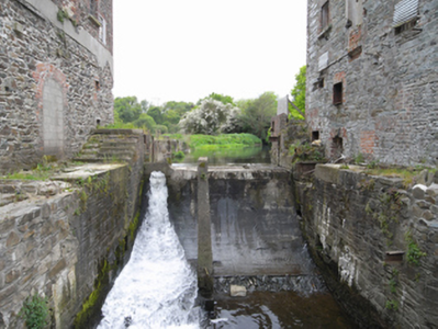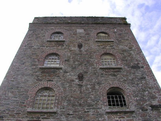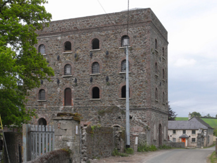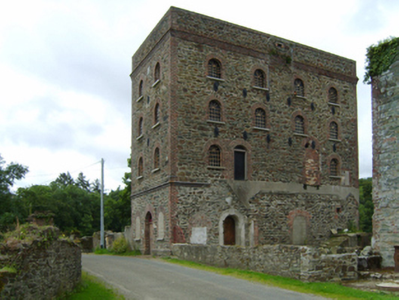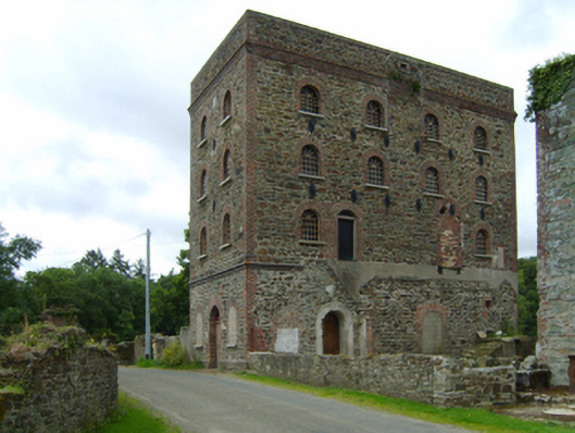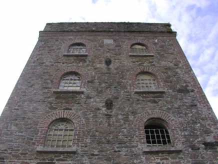 A tower-like mill erected by Francis Davis Junior (1807-90) representing an important component of the later nineteenth-century industrial heritage of County Wexford (Bassett 1885, 291) with the architectural value of the composition confirmed by such attributes as the compact rectilinear plan form; the construction in a multi-toned fieldstone with red brick dressings producing a mild polychromatic palette; the uniform or near-uniform proportions of the openings on each floor with the "arcaded" profile of those openings underpinning an Italianate theme; and the parapeted roof doubling as a water tank. A prolonged period of neglect notwithstanding, the form and massing survive intact together with quantities of the original fabric, both to the exterior and to the interior where "fireproof" vaults pinpoint the engineering or technical dexterity of a mill forming part of a self-contained ensemble (including 157026207 - 15702611) making a pleasing visual statement in a sylvan street scene. NOTE: Although commercially the least successful of the Davis-owned mills in the environs of Enniscorthy (cf. 15604026), and consequently disposed of at the turn of the twentieth century, the mill knew at least three later periods of industrial activity: as a generator supplying power to the Wexford County Lunatic Asylum (see 15604052); as a tobacco curing station opened by Lieutenant Colonel Loftus Anthony Bryan JP DL (1867-1939) of nearby Borrmount House (see 15702615); and as a cleaning and packing station for the County Wexford Beekeepers' Co-Operative Association organised by Ernest William Davis (1896-1962).