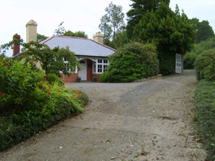 Detached three-bay single-storey gate lodge, designed 1895; extant 1903, on a square plan. "Restored", 2004. Replacement hipped slate roof on a quadrangular plan with terracotta ridge tiles, rendered red brick English bond chimney stacks having rendered rounded capping supporting yellow terracotta pots, and uPVC rainwater goods on timber eaves boards on slightly overhanging eaves. Roughcast walls on red brick header bond cushion course on red brick English bond base with dentilated rendered band to eaves. Square-headed central door opening with cut-granite threshold, and red brick voussoirs framing glazed timber panelled door. Square-headed flanking window openings with red brick header bond chamfered sills, and monolithic surrounds framing replacement casement windows. Set back from line of road at entrance to grounds of Brownswood with rendered, ruled and lined piers to perimeter having "Cavetto"-detailed capping supporting flat iron double gates.