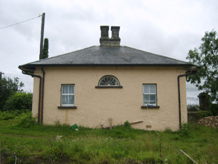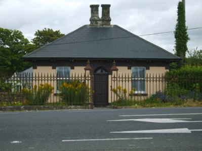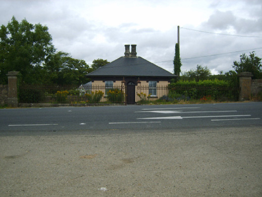 A gate lodge erected to a design attributed to John Benjamin Keane (d. 1859) of Mabbot Street [James Joyce Street], Dublin, with the architectural value of the composition suggested by such attributes as the compact rectilinear plan form centred on a restrained doorcase; and the decorative timber work embellishing a slightly oversailing near-pyramidal roofline. Having been well maintained, the elementary form and massing survive intact together with quantities of the original fabric: however, the introduction of replacement fittings to most of the openings has not had a beneficial impact on the external expression or integrity of a gate lodge forming part of a self-contained group alongside an opposing gateway (see 15703632) with the resulting ensemble making a pleasing visual statement in a rural street scene at the one-time principal entrance on to the grounds of the Edermine House estate.