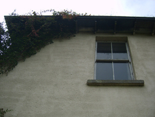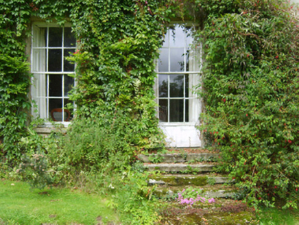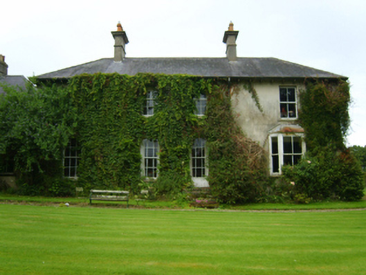 Detached three-bay two-storey farmhouse, extant 1840, on an L-shaped plan with four-bay (south) or single-bay (north) two-storey side elevations centred on single-bay (three-bay deep) full-height return (west). "Improved", pre-1903, producing present composition. Occupied, 1911. Sold, 1930. Now disused. Hipped slate roof on an L-shaped plan centred on hipped slate roof (west) with clay ridge tiles, rendered chimney stacks having stringcourses below cornice capping supporting terracotta or yellow terracotta octagonal pots, and cast-iron rainwater goods on slightly overhanging timber boarded eaves having timber consoles retaining cast-iron downpipes. Part creeper- or ivy-covered rendered walls; limewashed rendered surface finish (west). Round-headed central door opening approached by flight of three cut-granite steps, timber doorcase with reeded engaged colonettes supporting shallow cornice on dentilated frieze, and moulded rendered surround having concave reveals framing glazed timber panelled double doors having fanlight. Square-headed window openings with cut-granite sills, and concealed dressings framing two-over-two timber sash windows. Square-headed window openings to side elevations with cut-granite sills, and concealed dressings framing six-over-six (ground floor) or three-over-six (first floor) timber sash windows without horns. Interior including (ground floor): central hall retaining carved timber surrounds to door openings framing timber panelled doors, and plasterwork cornice to ceiling; reception room (south) retaining carved timber surround to door opening framing timber panelled door with carved timber surrounds to window openings framing timber panelled shutters, and plasterwork cornice to ceiling; reception room (north) retaining carved timber surround to door opening framing timber panelled door with carved timber surround to window opening framing timber panelled reveals or shutters, and plasterwork cornice to ceiling; and carved timber surrounds to door openings to remainder framing timber panelled doors with timber panelled shutters to window openings. Set in landscaped grounds.