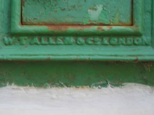 A "wall box" post box supplied by W.T. Allen and Company (fl. 1881-1955) of London representing an interesting example of mass-produced iron work making a pleasing, if largely inconspicuous visual statement in a rural village setting with embellishments identifying the artistic potential of the composition including the King Edward VII (1841-1910; r. 1901-10) royal cipher of additional significance as an imprinted reminder of the period when Ireland formed part of the British Empire.