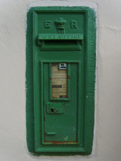 Wall-mounted cast-iron "wall box" post box, between 1905-10; extant 1921, with "ER [Edwardus Rex] VII" royal cipher. Site in rendered wall.