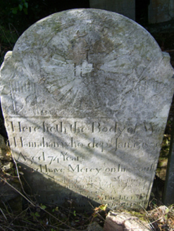 Graveyard with collection of lichen-spotted markers, ob. 1745-1991. Closed, 1992. Set in unkempt grounds with piers to perimeter having rubble stone capping supporting looped flat iron gate.