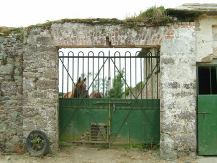 Walled garden, extant 1840, on a square plan with creeper- or ivy-covered coursed rubble stone boundary wall to perimeter having overgrown coping centred on red brick Running bond piers having pyramidal capping; red brick Running bond surface finish to courtyard elevations. Now disused. Set in grounds shared with Kilmannock House.