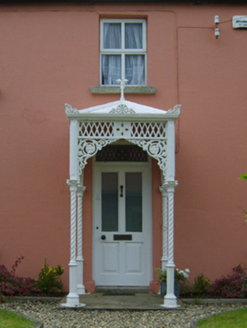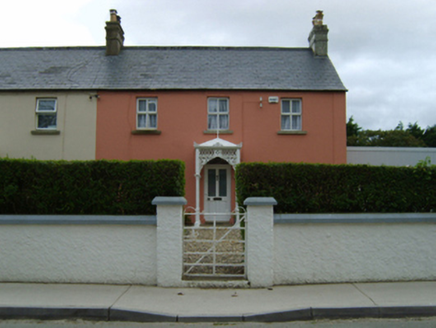 Semi-detached three-bay two-storey house, extant 1901, on a cruciform plan centred on single-bay single-storey projecting open porch to ground floor; single-bay (single-bay deep) full-height central return (west). Renovated, ----, to accommodate occasional use. One of a pair. Replacement pitched artificial slate roof on a T-shaped plan with roll moulded clay ridge tiles, concrete or rendered coping to gables with rendered chimney stacks to apexes having stringcourses below corbelled stepped capping supporting terracotta or yellow terracotta tapered pots, and uPVC rainwater goods on rendered eaves retaining cast-iron downpipes. Rendered, ruled and lined walls. Square-headed central door opening with concealed dressings framing glazed timber panelled door having overlight. Square-headed window openings with cut-granite sills, and concealed dressings framing replacement uPVC casement windows replacing two-over-two timber sash windows. Set back from road in landscaped grounds with roughcast piers to perimeter having chamfered capping supporting wrought iron-detailed flat iron gate.