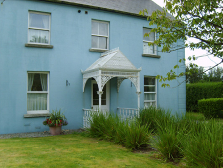 Detached three-bay two-storey house, extant 1901, on a cruciform plan centred on single-bay single-storey projecting open porch to ground floor; single-bay (single-bay deep) full-height central return (west). Renovated, ----, to accommodate occasional use. One of a group of three. Replacement pitched artificial slate roof on a T-shaped plan ridge tiles terminating in rendered chimney stacks having corbelled stepped capping supporting terracotta or yellow terracotta octagonal pots, and uPVC rainwater goods on rendered eaves retaining cast-iron downpipes. Rendered, ruled and lined walls with rusticated rendered piers to ends. Square-headed central door opening with concealed dressings framing glazed timber panelled door having overlight. Square-headed window openings with cut-granite sills, and concealed dressings framing replacement one-over-one sash windows replacing two-over-two timber sash windows. Set back from road in landscaped grounds with roughcast piers to perimeter having chamfered capping supporting wrought iron-detailed flat iron gate.