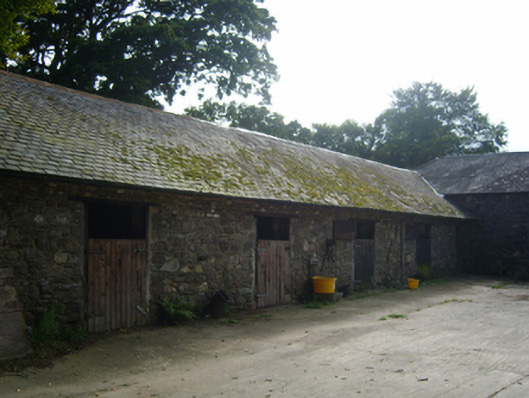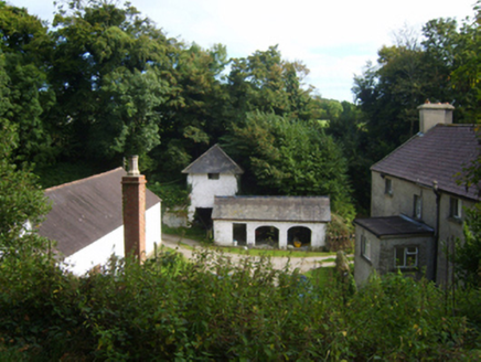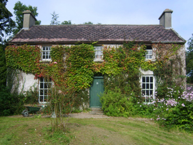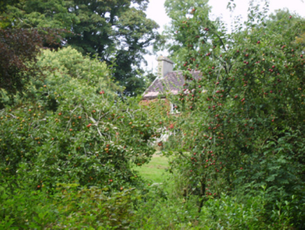 Detached three-bay two-storey over basement dower house, built 1837; extant 1840, on a rectangular plan with three-bay full-height rear (east) elevation. Sold, 1880. Occupied, 1911. Pitched red fibre-cement slate roof with clay ridge tiles, lichen-spotted concrete or rendered coping to gables with rendered chimney stacks to apexes having stepped capping supporting terracotta pots, and cast-iron rainwater goods on roughcast eaves retaining cast-iron downpipes. Creeper- or ivy-covered roughcast walls. Square-headed central door opening with cut-granite step threshold, and concealed red brick block-and-start surround framing timber boarded or tongue-and-groove timber panelled door having overlight. Square-headed window openings including square-headed window openings to rear (east) elevation with cut-limestone sills, and concealed red brick block-and-start surrounds framing six-over-six (ground floor) or three-over-six (first floor) timber sash windows with six-over-six (basement) or six-by-six horizontal (first floor) timber sash windows to rear (east) elevation. Set in landscaped grounds with piers to perimeter having capping supporting looped flat iron double gates.