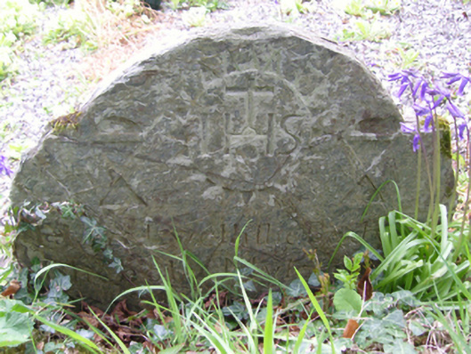 Graveyard with collection of lichen-spotted markers, ob. 1754-1859. Set in landscaped grounds with roughcast piers to perimeter having rendered pyramidal capping supporting flat iron gate.