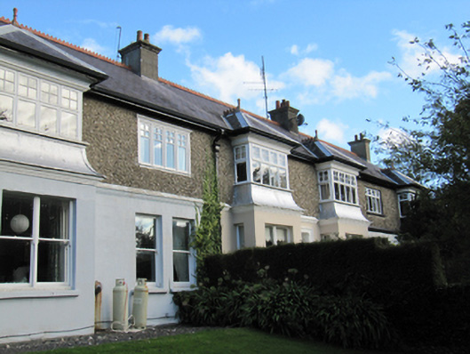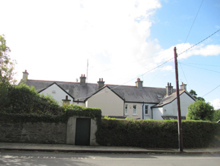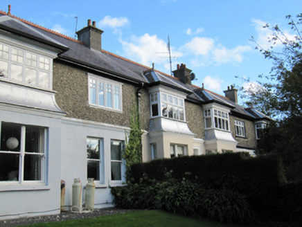 End-of-terrace two-bay two-storey Edwardian house, built 1906, with full-height bay window to front (south) elevation with curved zinc fascia between upper and lower windows,and two-storey return to rear. Entrance porch to east elevation. Rear elevation facing public road. Pitched slate roof with terracotta ridge crestings, rendered chimneystacks with terracotta chimney pots, and rooflight to north pitch. Hipped roof to bay window with terracotta ridge crestings and finial. Roughcast rendered walls with inset stone chips to first floor front elevation and east gable; painted to east gable. Moulded render string course. Lined-and-ruled rendered walls to ground floor and to rear elevation. Square-headed window openings with one over one pane timber sashes and replacement windows. Timber battened double-leaf gates to site entrance, rubble stone boundary walls.