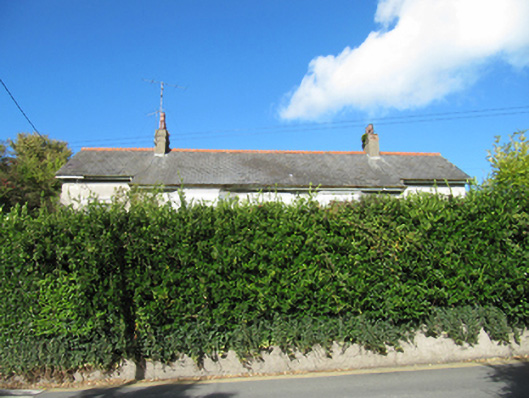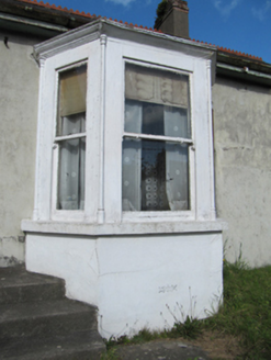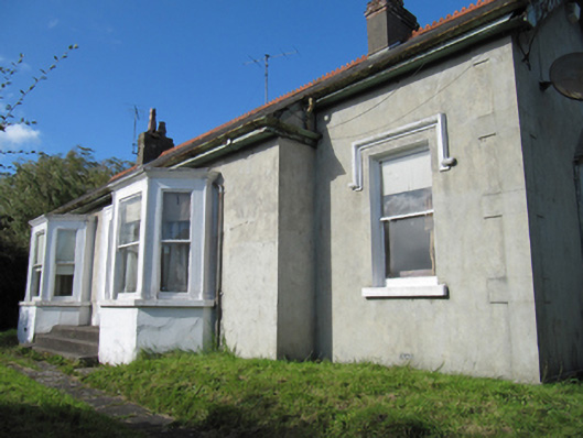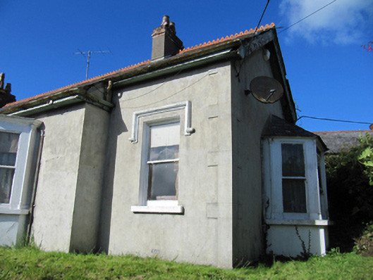 Detached five-bay single-storey Edwardian house, built 1907; composed of three-bay entrance projection with catslide roof to front (south) elevation, with two flat roofed canted bay windows, and with canted bay window with hipped slate roof to side elevations; extension to rear. Pitched slate roof with terracotta ridge crestings and rendered chimneystacks, timber bargeboards and eaves, and cast-iron rainwater goods. Unpainted smooth rendered walls with render quoins. Square-headed openings with one-over-one pane timber sliding sash windows, having carved timber colonettes and cornices and painted continuous sills to bay windows, and having painted carved label mouldings to other windows. Square-headed door opening with moulded render surround with decorative keystone, timber panelled door with plain overlight. Rendered steps approaching door. Cast-iron pedestrian gate with rendered piers, steps to site entrance. Rendered boundary walls.