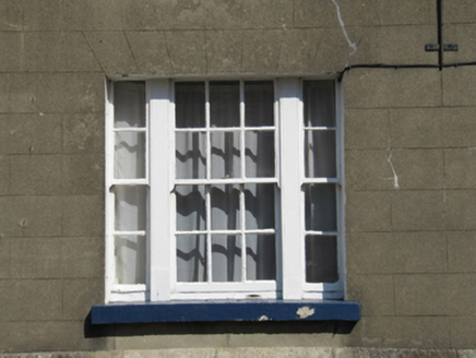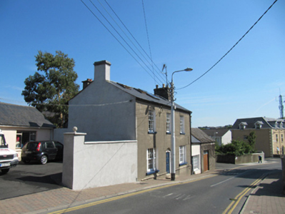 Attached three-bay two-storey over basement late-Georgian house, built c.1830, having two-storey return to rear. Pitched tiled roof with end chimneystacks and recent rooflights. Unpainted lined-and-ruled rendered walls with granite plinth course to front elevation, having decorative cast-iron ventilation grill to basement level. Smooth rendered gable walls. Square-headed window openings with painted stone sills, with timber sliding sash windows, fifteen-over-fifteen panes to first floor, tripartite to ground floor with six-over-six panes flanked by two-over-two. Elliptical-headed door opening, having timber panelled door flanked by sidelights, with spoked fanlight over. Cut granite steps to door. Sited directly on street.