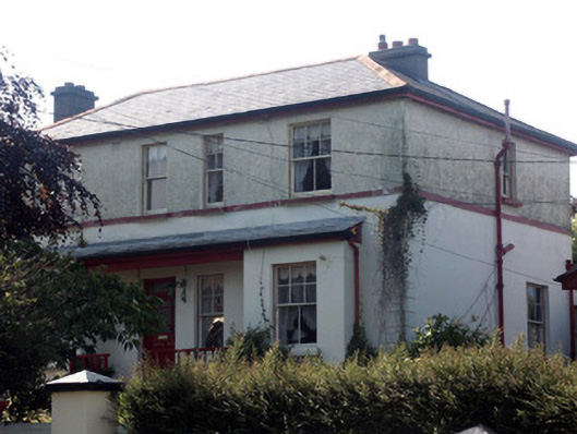 Detached four-bay two-storey house, built c.1905. The south front of the building is partly obscured by large shrubs. The part-glazed panelled front door has a plain fanlight and is set within a flat-headed opening. To either side is a projecting single-storey square bay. A slated lean-to roof extends over both bays and the entrance to create an open veranda effect. Window openings are all flat-headed and have six over two and four over one timber sash frames. The hipped roof is finished with slate and cast-iron rainwater goods; chimneystacks are rendered with plain copestones. The house is slightly set back behind a rendered wall which has square gate pillars with pyramidal caps.