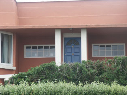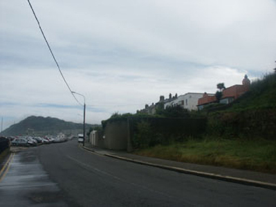 Detached four-bay single-storey house, built 1937. The house is finished in render. The front replacement panelled door is flanked by two wide multiple pane uPVC windows and all are set within a recessed bay with a plain flat-roofed concrete porch roof which is supported on two plain concrete columns. The porch roof extends either side to form the flat roofs of canted projecting bays; each canted bay sits forward of a slightly projecting square bay. All windows are flat-headed with uPVC replacement frames. The roof is flat and chimneystacks are rendered with clay pots. The house sits on a rise facing and overlooking the promenade behind a tall stone wall.