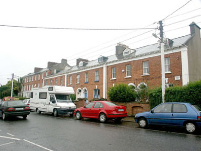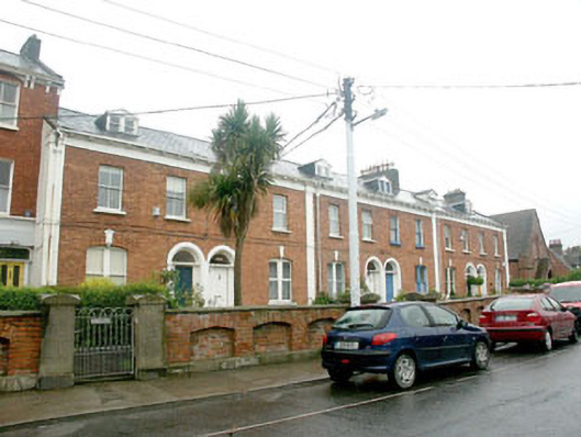 Terraced two-bay two-storey house with attic, built c.1880 as part of a group of six identical properties. The façade is finished in brick, with a painted brick surround to the entrance, a rendered and bracketed eaves course, and a panelled Giant order pilaster to the western edge of the front elevation. The slated pitched roof has a gabled dormer, and a shared brick chimneystack. The entrance consists of a panelled timber door with pilaster jambs, dentilled entablature and plain segmental fanlight. The windows are a mixture of segmental and flat-headed and have replacement uPVC frames and painted stone sills. The window to the ground floor of the front elevation has a decorative moulded keystone in the form of the Prince of Wales feathers. Cast-iron rainwater goods. The house fronts on to a street but is separated from it by a small garden enclosed by a brick wall with arched recesses, rendered coping, and a wrought-iron gate with rendered piers.