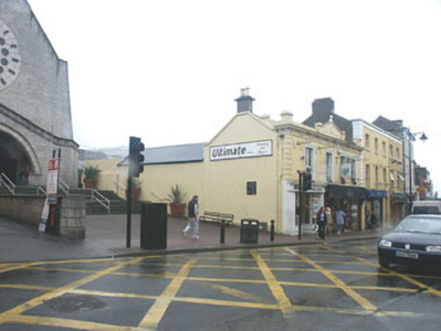 End-of-terrace four-bay two-storey commercial building, built c.1865, now divided into two shops. To the rear there is a large two storey return. The façade is finished in painted render with rusticated quoins, a bracketed eaves course and a parapet with panelled piers and a central pediment with ball finial and laurel wreath moulding to the tympanum. The gable-ended pitched roof is slated and has rendered chimneystacks. The ground floor level of the front elevation is completely taken up with two replacement timber shopfronts of c.1995, each with recessed glazed doors and large plate glass windows. Between the shopfronts is a further doorway which gives access to the first floor. The flat-headed first floor windows have moulded surrounds, and a mixture of one over one timber sash frames and a c.1950s timber casement frame. The property has a street frontage.