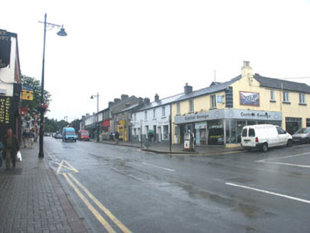 Terraced six-bay two-storey pair of houses, built c.1840, now in use as a house and two shops. The façade is finished in painted render whilst the pitched roof is slated and has rendered chimneystacks. The house and the shop to the south side, (which was originally a house), have replacement timber and glazed entrance doors, with a largely glazed door to the shop to the north side (which was originally part of the house). The windows are all flat-headed, however those to the ground floor are of various sizes and have various timber frames, two single-pane fixed light frames, the other a one over four sash frame. The upper floor windows are uniform, each with a timber casement frame. Above the shop window and door is a moulded ‘signboard’. Cast-iron rainwater goods. The property has a street frontage.