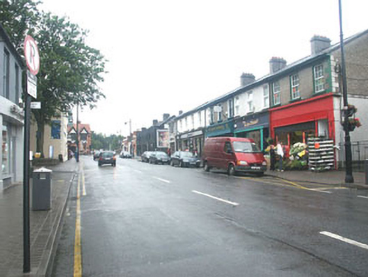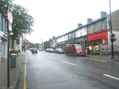 Terraced three-bay two-storey shop, built c.1840 with shopfront of c.1930. The façade is finished in pebbledash with the whole of the ground floor level taken up with a largely glazed timber shopfront. The pitched roof is slated and has rendered chimneystacks. The shop has a largely glazed entrance door to the south side with another door to the north giving access to the first floor apartment. Between these doorways is a curving shop window. Over the shopfront is a large projecting replacement timber signboard. The first floor windows are flat-headed and have six over six timber sash frames. Cast-iron rainwater goods.