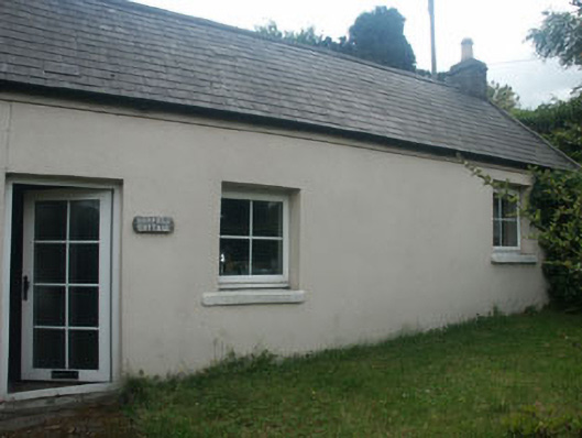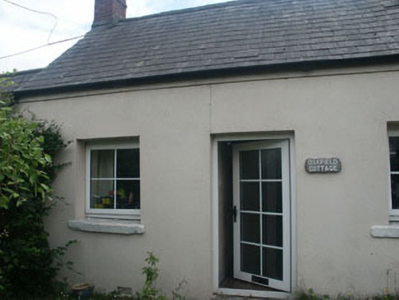End-of-terrace four-bay single-storey vernacular house, built c.1840, one of a ‘stepped’ non-identical group of four. The façade is in painted plain render and the pitched roof slated, with rendered chimneystacks. The flat-headed windows have uPVC frames and painted stone sills whilst the off centre flat-headed entrance has a mainly glazed uPVC door. uPVC rainwater goods. Small garden to front bounded by a low rubble stone wall with rough stone coping. The property has a late 20th century extension to the rear.