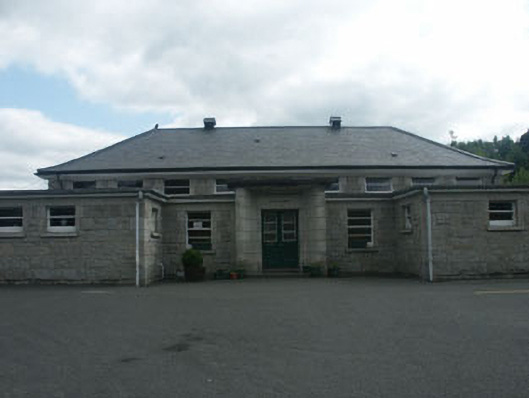 Detached, multiple-bay single-storey school, built 1940, in granite with a main hipped-roofed section fronted by a lower flat-roofed entrance projection with wings and large, c.1990, single-storey extension to northwest. The granite façade of the original building is rock-faced with the overhanging hipped-roof slated. The entrance is set within a centrally located recessed bay and consists of an open flat-roofed porch with dressed granite splayed reveal and panelled timber and glazed double door. Most of the flat-headed windows have timber sash frames whilst others at clerestorey level have metal frames; stone sills; cast iron rainwater goods. The extension is in a more overtly modern style with informal plan, moulded concrete façade, large uPVC framed windows and corrugated-metal clad hipped roof.