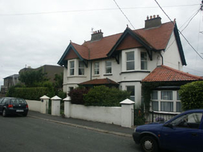 Eight-bay two-storey pair of semi-detached rendered houses built c.1920 in somewhat eclectic Arts and Crafts / Domestic Revival style. The multiple panelled part glazed doors have lean-to and hipped roof porch which is supported by turned timber posts. To the north side is a two-storey canted bay with gabled roof with exposed decorative timber brackets. All windows have flat heads and have one over one uPVC replacement frames. Pitched roof is covered with Rosemary tiles with cast-iron rainwater goods. Vertical Rosemary tile with decorative pattern to the gable peak of the bays. Distinctively shaped battered chimneystacks set laterally on the ridge line; mixed style clay pots.