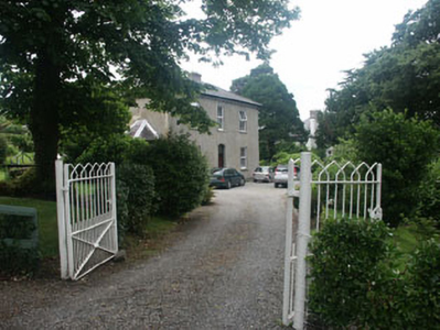 Detached three-bay two-storey rendered house, built c.1870. The panelled door and plain fanlight are set within a chamfered segmental headed opening. All windows are flat-headed with uPVC two over two frames; there are three to first floor and one either side of the front door in symmetrical arrangement. The pitched slated roof is hipped and has a bracketed overhang. Rendered chimneystacks with corbelled caps and clay pots. The house is set within a large garden which is accessed, through wrought-iron gates, directly from the adjoining church grounds.