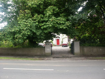 Detached three-bay two-storey house, built c. 1875. It is now finished in replacement roughcast render. The panelled door is framed with panelled pilasters with console brackets which support a cornice and fanlight with intersecting tracery pattern, all set within a semi-circular headed opening. Window openings are all flat-headed and frames are all six over six sash. The shallow pitched roof is finished in slate with cast-iron rainwater goods; it is hipped and has two evenly spaced centrally positioned chimneystacks with corbelled caps and clay pots. The house is well set back behind plain gate screen with square gate pillars, pyramidal caps and wrought-iron gates; it is within a large private garden.