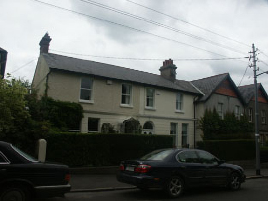 End-of-terrace three-bay two-storey house, built c.1900. The walls are finished in render with rusticated finish to ground floor, roughcast finish to the first floor; there is a moulded projecting string course. The part glazed door has plain fanlight and side panels and is recessed within an open porch with semi-circular headed opening. Recent wrought-iron trellis encloses the door opening. All window openings are flat-headed with one over one sash frames. The pitched roof is finished in slate with cast-iron rainwater goods. Brick chimneystack has corbelled caps and clay pots. The house is slightly set back behind a small wrought-iron gate with wrought-iron gate posts.