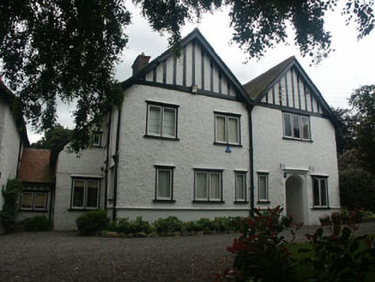 Detached six-bay two-storey with attic, double gable-fronted house, built c.1905. The building is in a relatively plain Domestic Revival style and is roughly rectangular in plan but with a one and a half-storey lean-to projection to the east elevation which links, via a short single-storey section, to a large two and a half-storey extension of c.1925 with garage. The façade is in painted roughcast with mock timber-framing to the gables, a plain rendered base course and narrow plain rendered window surrounds. The tile covered pitched roof has some flat-roofed dormers, tall brick chimneystacks and an overhang with exposed rafter ends and plain bargeboards. The entrance consists of a partly glazed timber door set within a deep elliptical arch-headed recess. The windows are flat-headed and have painted timber sills and plain timber casement frames. The windows to the extension have metal frames. Cast-iron rainwater goods. The house is set at the side of a tree-lined suburban street, but is surrounded by a large garden mainly enclosed by a hedge. The entrance to the garden is to the north side.