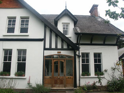 Matching pair of semi-detached multiple-bay two-storey Domestic Revival style houses, built c.1905. The houses have an irregular plan and both share a large full-height projecting gabled bay to the front. The façades of both are rendered with small sections of mock timber framing and tile cladding to the large front projection. The gable-ended slated pitched roof has an overhang which is partly supported on slender curving metal brackets and has plain bargeboards and finials. The chimneystacks are in brick and have pronounced corbelling. The entrance to each house is located within the large front gable, each consisting of a partly glazed timber door with sidelights and segmental-headed fanlight. The windows are flat-headed and have timber sash frames, four over one. Most of the windows are arranged in pairs, with a small first floor window set within a small gabled half dormer. Cast-iron rainwater goods. The houses are set at the side of a mainly tree-lined suburban street, but are surrounded by gardens enclosed by hedges.