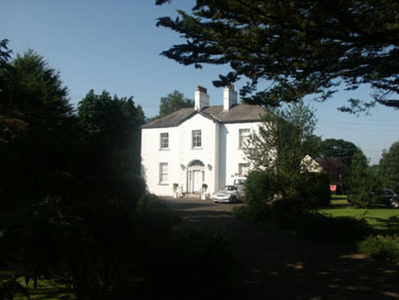 Detached three-bay two-storey parochial house, built c.1850. The building is finished in render with block and start quoins. The panelled front door is flanked with paired reeded pilasters with brackets which support a projecting cornice; above is a radial fanlight and all this is set within a semi-circular arched opening. The door is set within a projecting two-storey bay with open-based pediment. The window openings are flat-headed with three over six and six over six timber sash frames. The roof is finished with natural slate and has cast-iron rainwater goods with corbelled paired brackets. The chimneystacks have slightly corbelled caps and clay pots. Set in grounds shared with Catholic Church of Saint Nicholas of Myra.