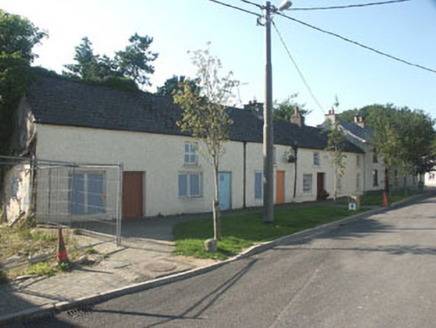 Short terrace of one single- and two two-bay two-storey houses, built c.1820, and all now disused. The entire front elevation is finished in painted roughcast and the pitched roofs are covered in artificial slate. The doorways and the flat-headed windows have been boarded over (with the boards painted to simulate actual doors and window frames). Cast-iron rainwater goods. The terrace faces onto a street.