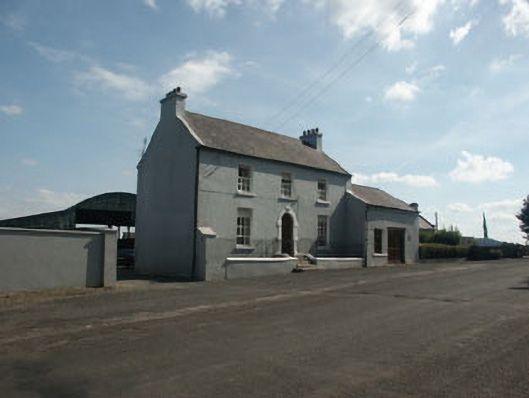 Detached three-bay two-storey house, built c.1840 and has a later one and a half-storey addition to the south-west side. The house is finished in render. A short flight of stone steps rise to the panelled timber front door which has a radial fanlight over and is set within a semi-circular arched opening; this is dressed with a Gibbsian surround. The window openings are flat-headed with six over six timber sash frames. The pitched roof is finished with natural slate and has cast-iron rainwater goods. Chimneystacks are rendered with plain caps and matching clay pots. The house faces the road and is slightly set back behind a low rendered wall with wrought-iron railings.