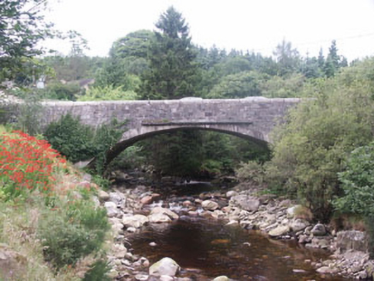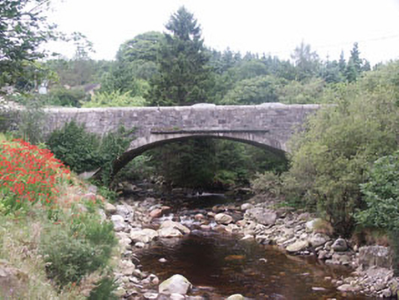 Single-span road bridge over Gleanmacnass River, built in 1956. The bridge is constructed in squared rubble with rounded granite coping to the parapets, whilst the segmental arch is edged in concrete.