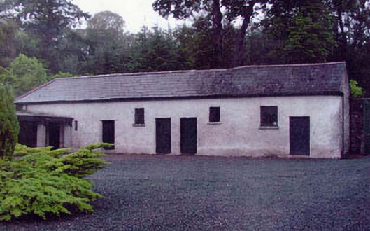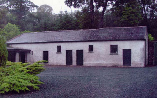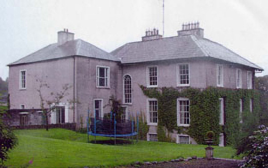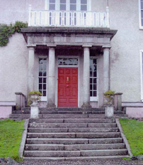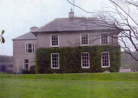 Detached three-bay two-storey over basement country house, built c.1800. The country house is roughly square in plan with a later return block at one rear corner and a granite Doric portico. The walls are finished in painted roughcast with plain surrounds to the window openings. The overhanging hipped roof is slated and has rendered chimneystacks. The entrance consists of a panelled timber door with rectangular fanlight with decorative tracery, and tall sidelights with six over six timber sash frames. The roof of the portico acts as a balcony and has cast iron railings. The window openings are flat-headed and mainly have six over six timber sash frames. Some windows to rear have replacement frames. The country house is set within extensive grounds with outbuildings and a walled garden.
